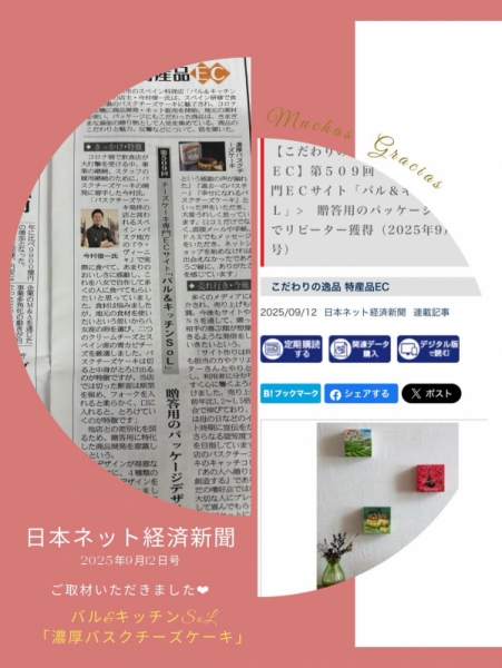 日本ネット経済新聞にて「濃厚バスクチーズケーキ」の記事が掲載されました!