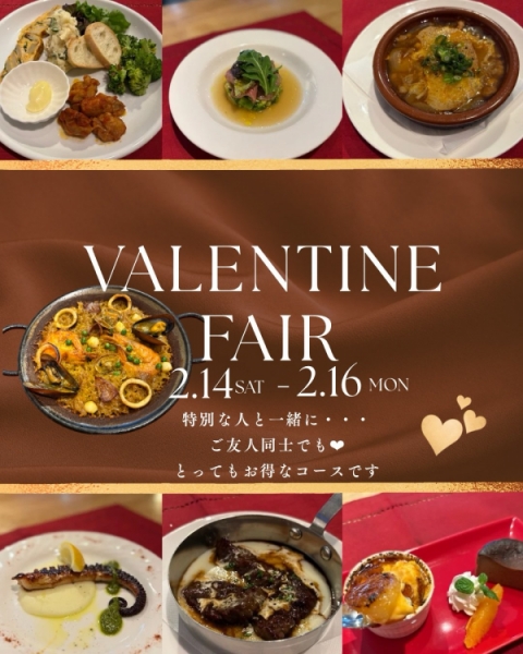 2月14日(土)〜16日(月)の3日間限定で、スペイン料理をたっぷり味わえる「バレンタイン特別コース」をご用意しました。